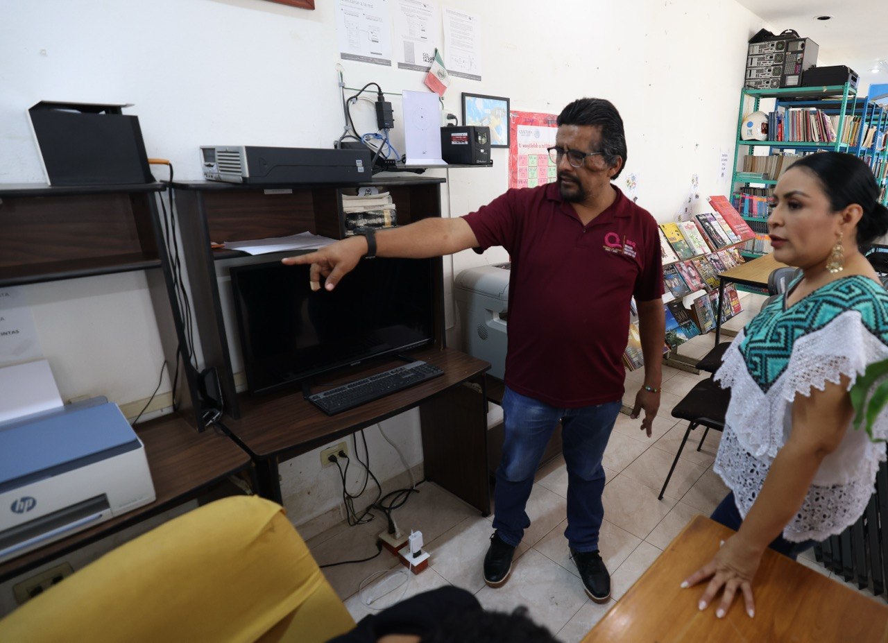 En un esfuerzo por consolidar espacios dignos y funcionales para la formación de la niñez y juventud de Puerto Morelos, la Presidenta Municipal, Blanca Merari, encabezó la entrega de sillas nuevas en la biblioteca “Pablo Pancardo Vargas”, ubicada en la delegación Leona Vicario. La acción forma parte de una estrategia permanente para mejorar la infraestructura educativa y promover entornos que impulsen el aprendizaje, la lectura y la convivencia comunitaria.