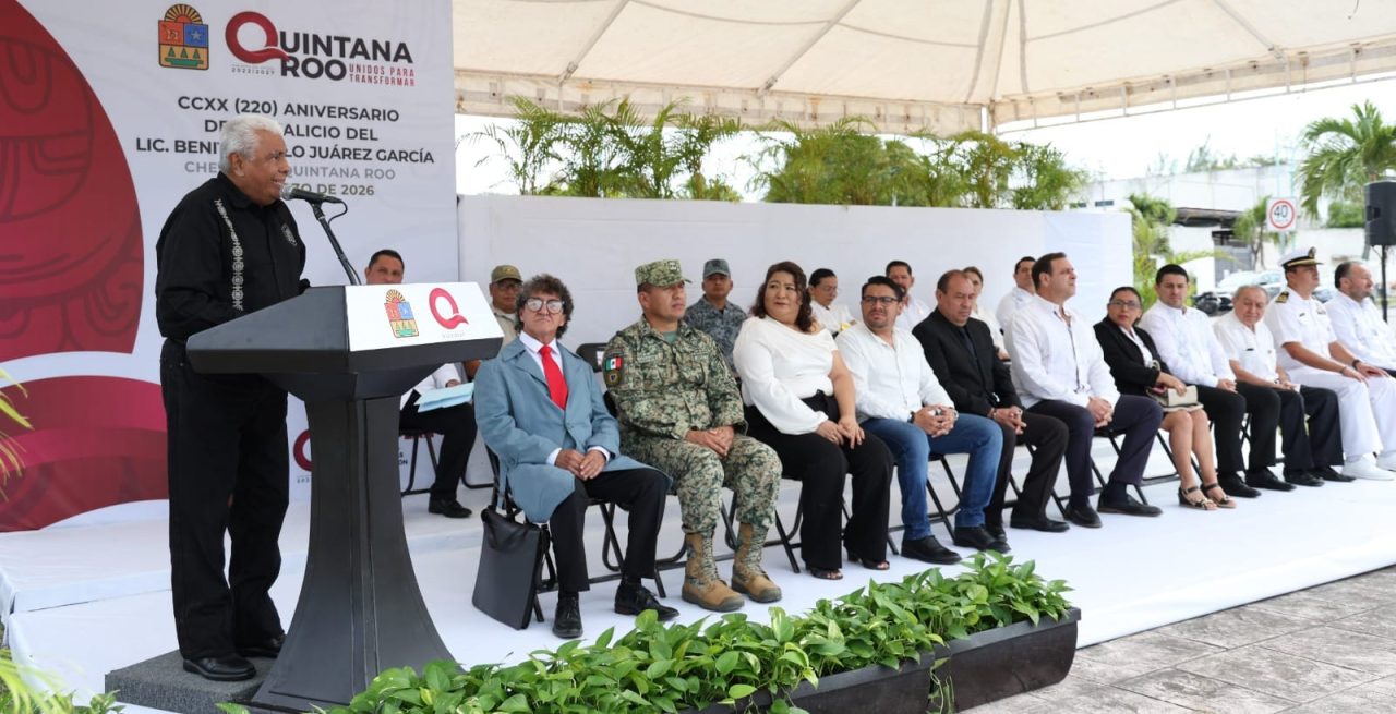 El Gobierno de Quintana Roo conmemoró este 21 de marzo el 220 aniversario del natalicio de Benito Juárez García, figura central en la construcción del Estado mexicano moderno. La ceremonia, organizada por la Secretaría de Finanzas y Planeación (SEFIPLAN) en coordinación con diversas logias masónicas, reunió a autoridades civiles, militares y representantes de la sociedad en un acto solemne celebrado en Chetumal.