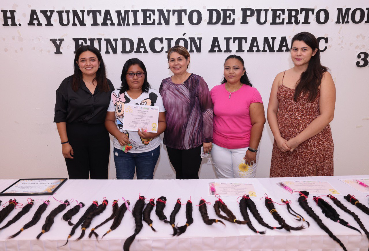 Vanessa López Páez, directora del DIF, informó que la campaña logró reunir 42 trenzas gracias a la colaboración de personas voluntarias, entre ellas la estilista Any Grisel Pech Cruz, quien ha participado por cuarto año consecutivo. Las donantes recibieron reconocimientos por su generoso gesto, al igual que trabajadores de los hoteles El Cid, Jade Dreams y Zafiro.
