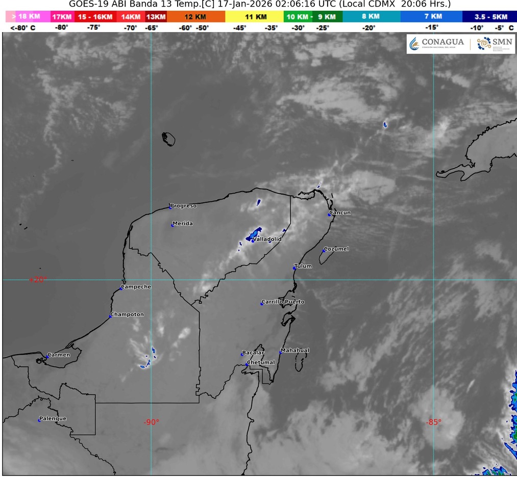 Quintana Roo amaneció este sábado 17 de enero de 2026 con condiciones meteorológicas estables, caracterizadas por cielo despejado en la mayor parte del estado, ambiente templado y baja probabilidad de lluvia en los municipios del sur y centro.