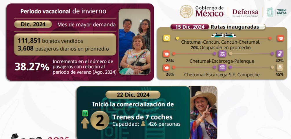 Agencias.-El Tren Maya tuvo mucho trabajo durante el periodo vacacional de invierno ya que vendieron 111 mil 851 boletos, tan solo en diciembre.