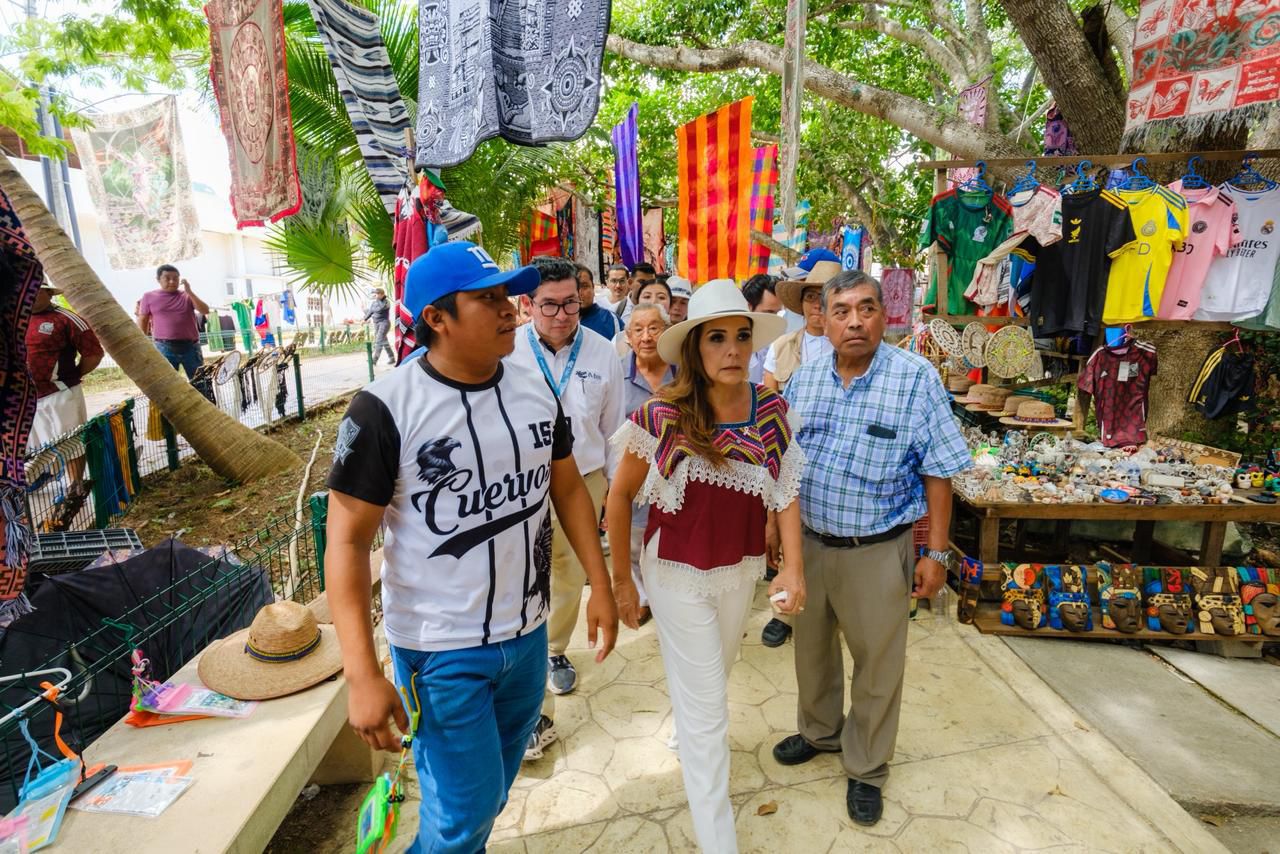 Acompañada del presidente municipal de Tulum, Diego Castañón Trejo, Mara Lezama destacó que este gobierno humanista con corazón feminista, ha implementado más de 20 programas para el impulso de la labor artesanal, de cultura alimentaria y turismo de base comunitaria donde participan diversas secretarías de manera transversal, destacando “Artesanas del Bienestar”, “Mujer es Emprender”, “Apoyo a Proyectos de Cultura Comunitaria y Alimentaria”, “Hilando Saberes”.