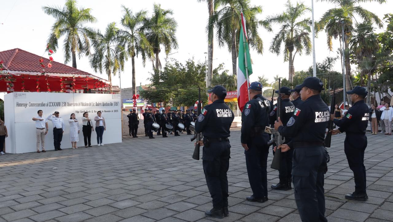 Domingo 30 de noviembre de 2025.- Con un solemne homenaje cívico, el ayuntamiento de Felipe Carrillo Puerto conmemoró el 238 aniversario del natalicio de Andrés Quintana Roo, figura clave en la historia de México como poeta, periodista y destacado insurgente en la lucha por la independencia nacional. Su legado permanece vivo, al dar nombre al estado de Quintana Roo, símbolo de identidad y memoria histórica.