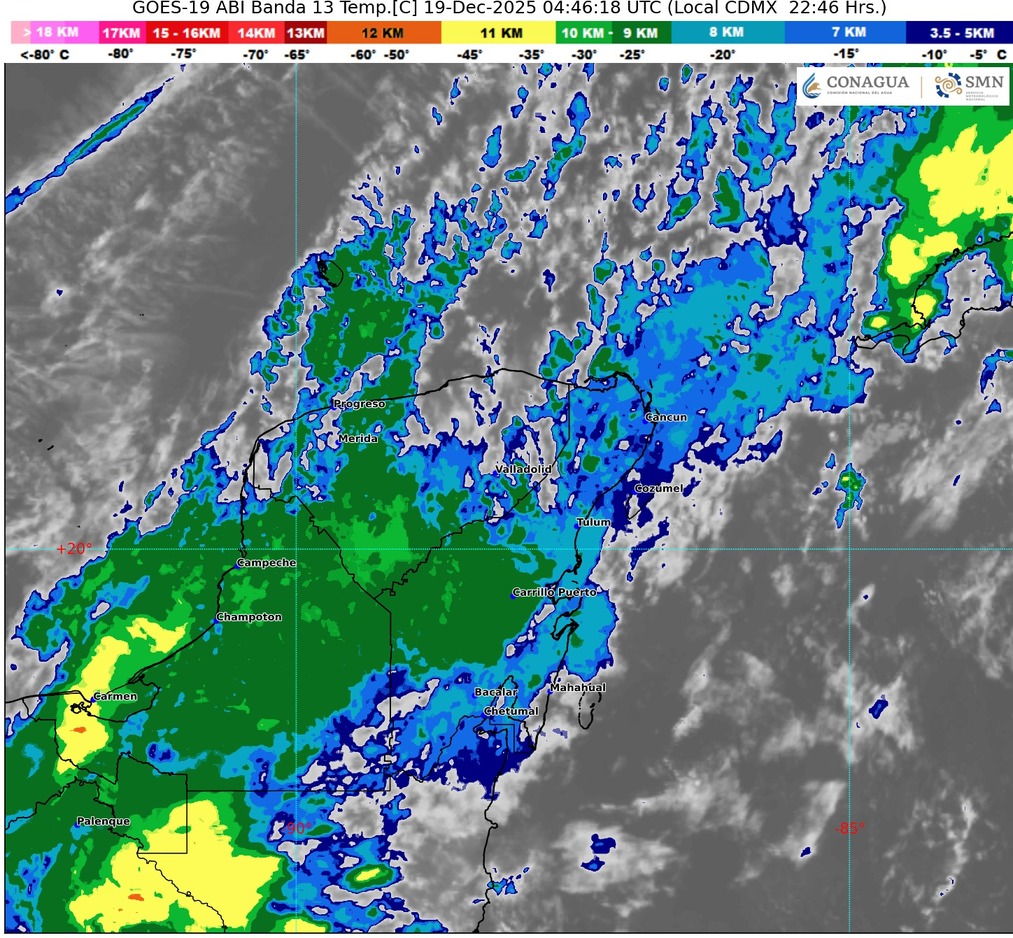 Quintana Roo, 18 de diciembre de 2025.– El estado se prepara para una jornada marcada por ambiente cálido y húmedo, con lluvias intermitentes en varias zonas, especialmente en municipios costeros. La entrada de aire húmedo proveniente del Caribe mantendrá cielos nublados y precipitaciones ligeras a moderadas durante el día.