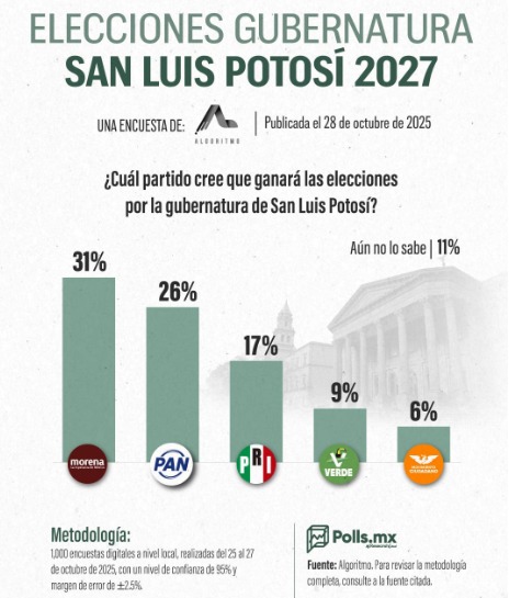 Aquí les dejamos la gráfica de San Luis Potosí, de la encuestadora Algoritmo, para que usted la analice y tenga como siempre la última palabra.