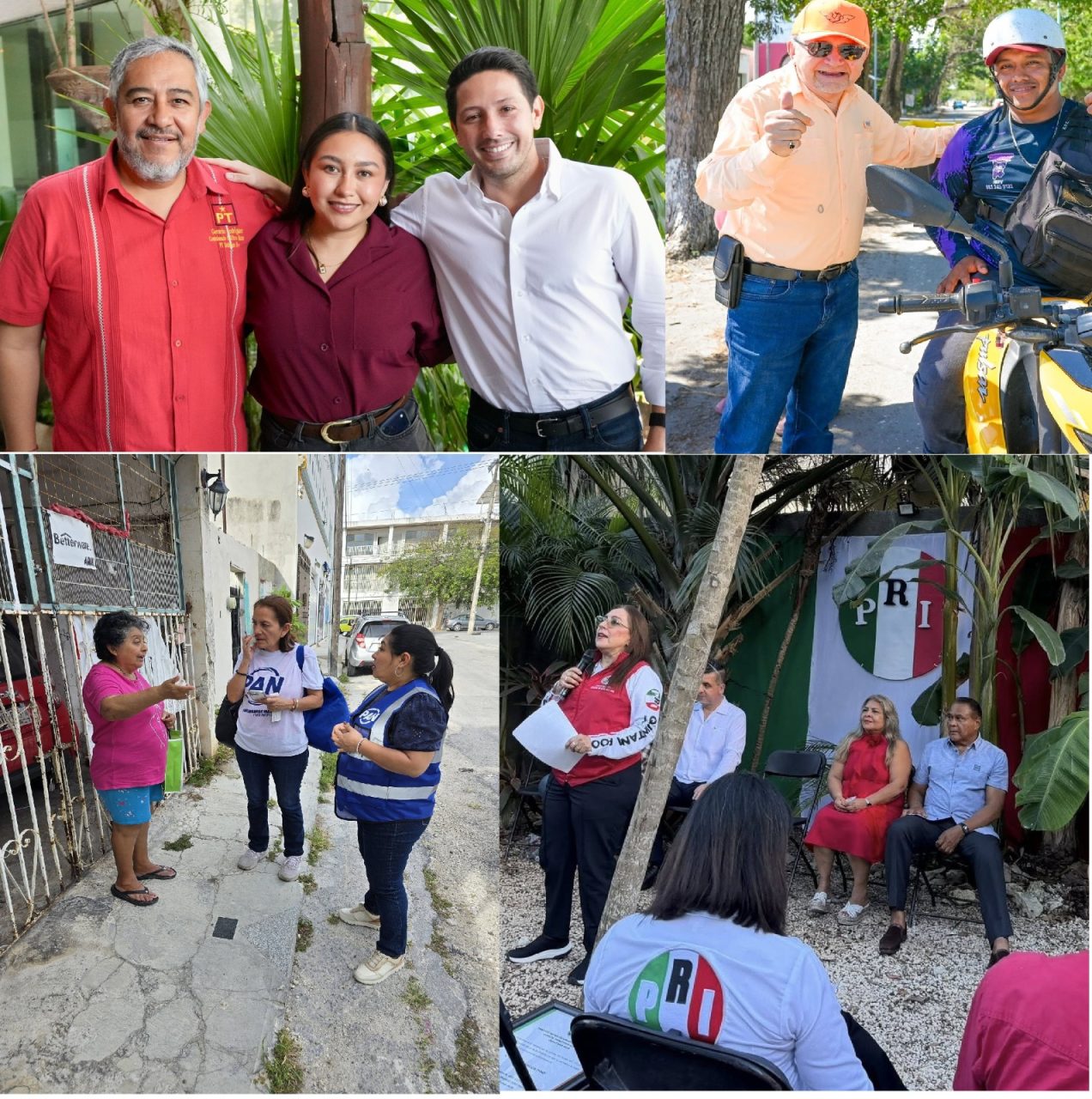 Lo mismo veo colores del Movimiento de Regeneración Nacional (Morena), Partido Verde Ecologista de México (PVEM), Partido del Trabajo (PT), que del Partido Revolucionario Institucional (PRI), Acción Nacional (PAN), Movimiento Ciudadano (MC); los rezagados en su promoción son los partidos locales Movimiento Laborista de Quintana Roo (MLQRoo) y Redes Sociales Progresistas por Quintana Roo (RSP).
