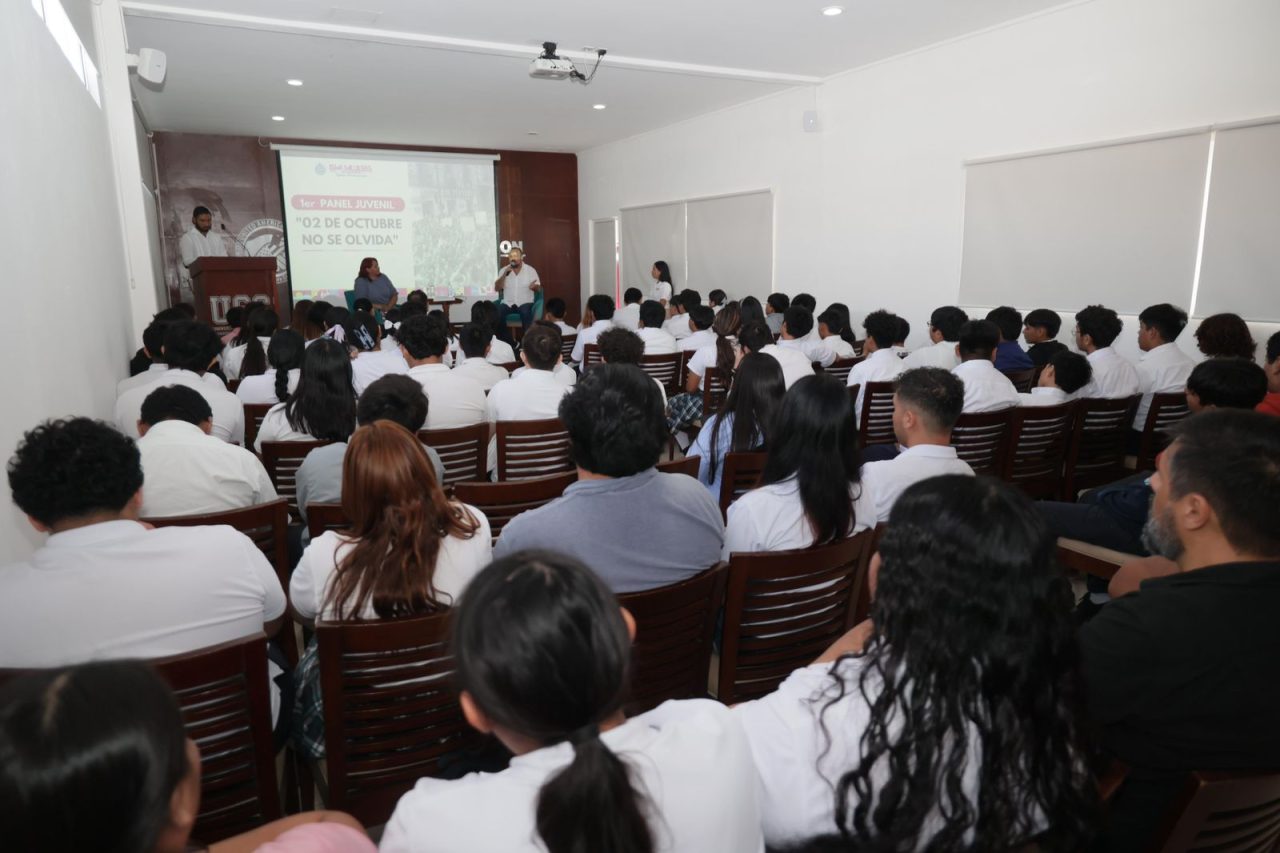 Isla Mujeres, Quintana Roo, 2 de octubre de 2025.– En un acto de compromiso con la memoria histórica y la formación cívica de las nuevas generaciones, el Gobierno de Isla Mujeres, encabezado por la presidenta municipal Atenea Gómez Ricalde, realizó el panel juvenil “2 de octubre no se olvida”, con el objetivo de fomentar la reflexión sobre la participación ciudadana y el papel transformador de la juventud.