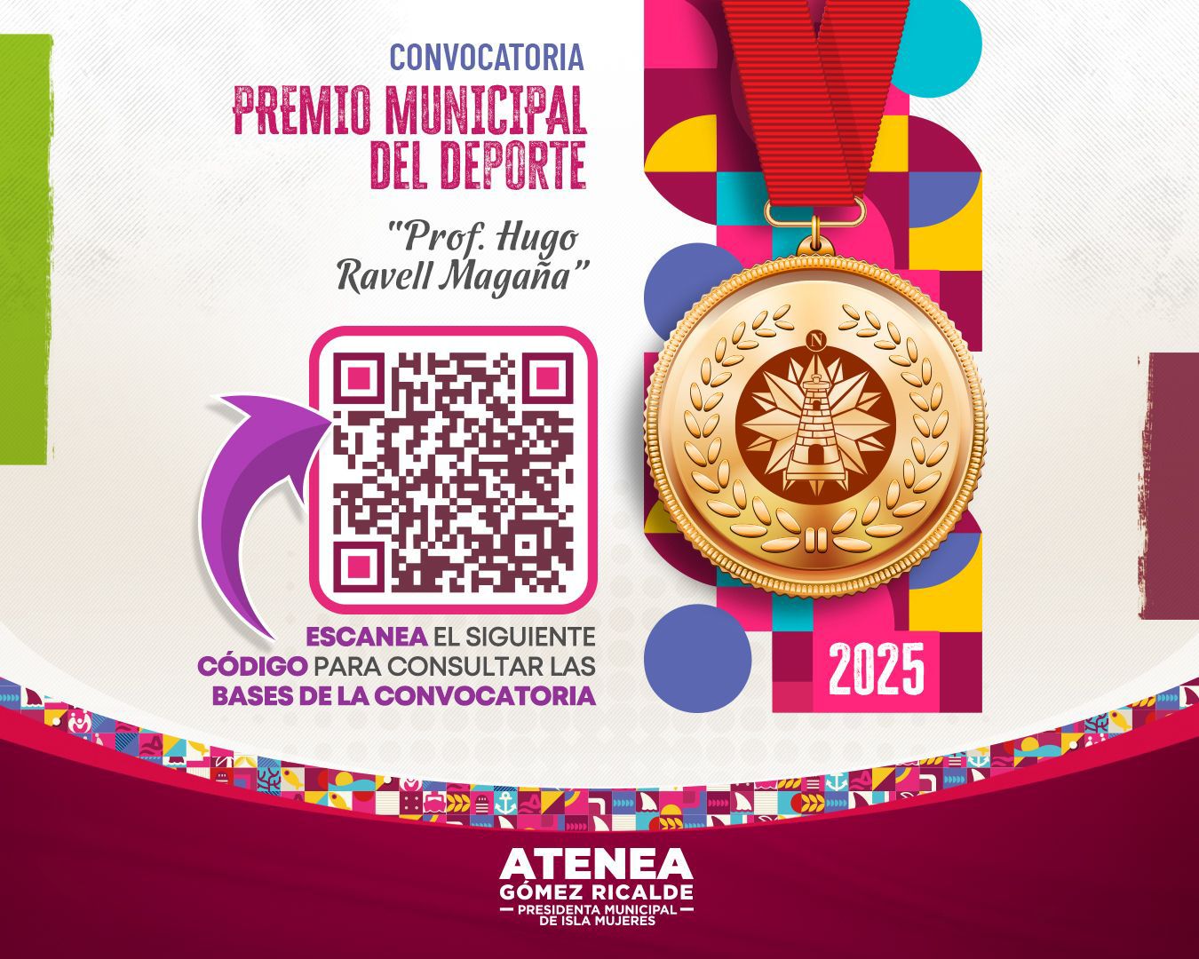 Isla Mujeres, Quintana Roo, 2 de octubre de 2025.— El Gobierno Municipal de Isla Mujeres, encabezado por la alcaldesa Atenea Gómez Ricalde, mantiene abierta la convocatoria para el Premio Municipal del Deporte “Profesor Hugo Ravell Magaña”, un reconocimiento que celebra el esfuerzo, la disciplina y los logros de atletas locales.