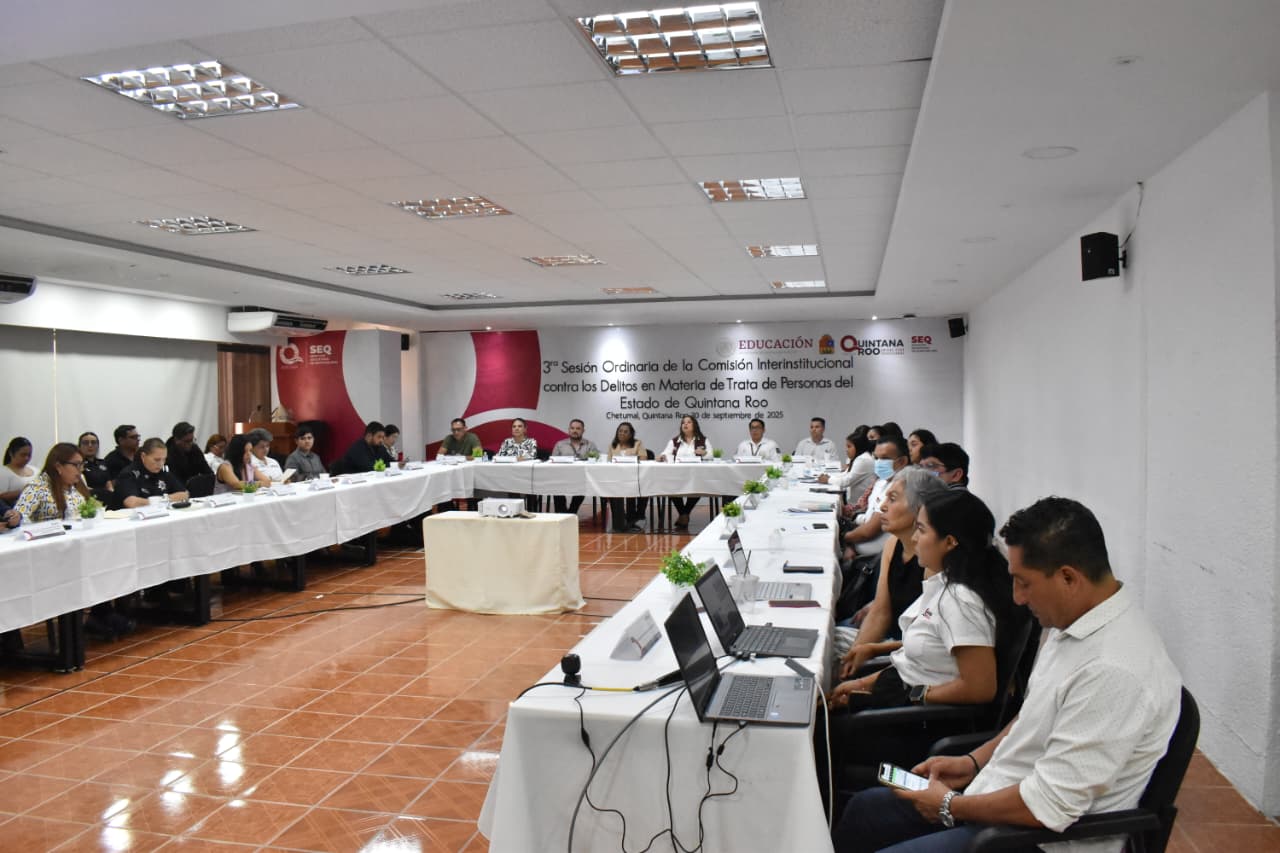 Chetumal, Q. Roo.— En un firme compromiso por erradicar la trata de personas, el Gobierno de Quintana Roo llevó a cabo la Tercera Sesión Ordinaria de la Comisión Interinstitucional Contra los Delitos en Materia de Trata de Personas, donde se reafirmaron estrategias para prevenir, atender y sancionar este delito que vulnera los derechos humanos.