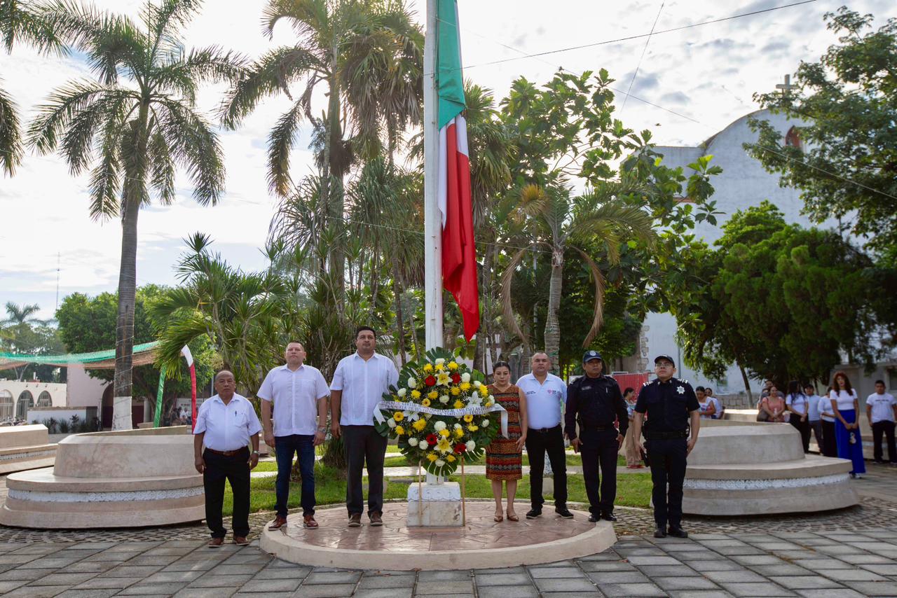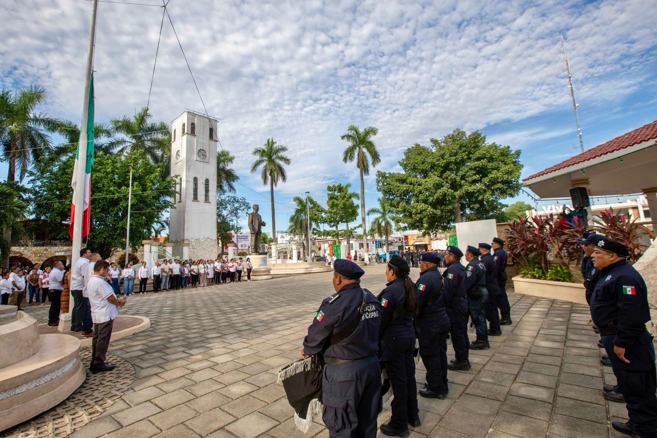 El evento inició con honores a la bandera nacional, izada a media asta en señal de luto, y la entonación de los himnos de Quintana Roo y México, bajo la coordinación de la banda de guerra municipal. Funcionarios locales, trabajadores del ayuntamiento y representantes de la comuna participaron en el acto.