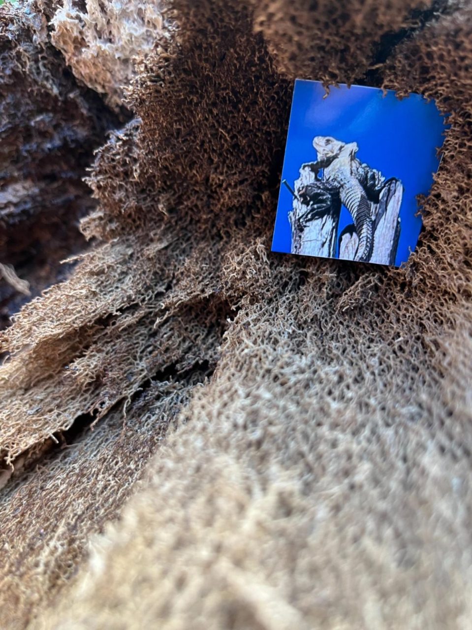 Daniel Aguilar, originario de la Ciudad de México, ha desarrollado una trayectoria artística desde 1996 en disciplinas como instalación, pintura, fotografía, poesía y arte de acción. Su más reciente enfoque en el arte naturaleza lo llevó a crear esta serie que rinde homenaje a la iguana, figura central en la cosmovisión maya y asociada a Itzamná, deidad del conocimiento.