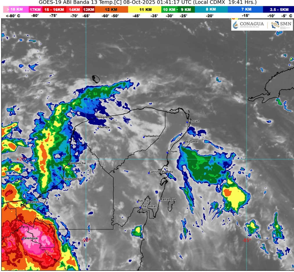 Chetumal, Q. Roo — 8 de octubre de 2025. El estado de Quintana Roo enfrenta este miércoles un panorama meteorológico complejo, marcado por lluvias intensas, tormentas eléctricas, rachas de viento de hasta 50 km/h y oleaje elevado en zonas costeras. La interacción de la Onda Tropical 36 con humedad del Mar Caribe y una baja presión frente a las costas del estado ha generado condiciones inestables que podrían extenderse durante el día.