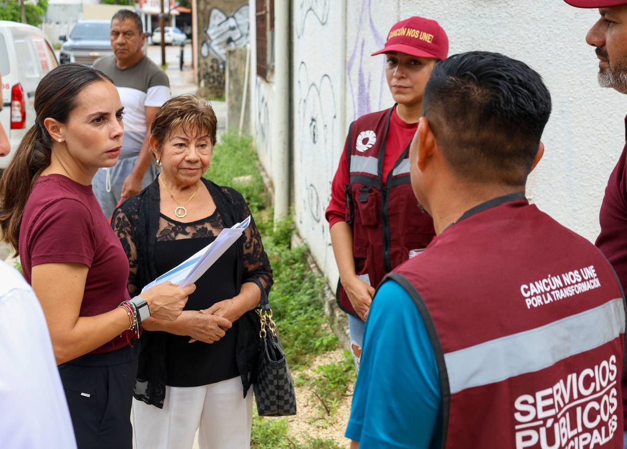 La edil también verificó el avance de la brigada de bacheo en frío en la Avenida Palenque, técnica que permite trabajar incluso bajo lluvia, y la descacharrización en la Supermanzana 29, acción que busca prevenir riesgos sanitarios en colonias como las Supermanzanas 238 y 260.