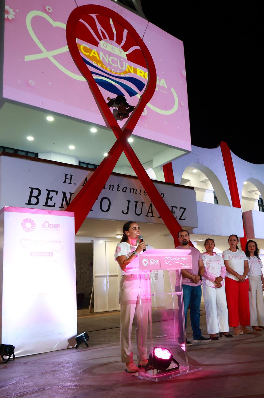 Cancún, Q. R., a 07 de octubre de 2025.— En una emotiva jornada que unió a instituciones públicas, organizaciones civiles y ciudadanía, la Presidenta Municipal de Benito Juárez, Ana Paty Peralta, encabezó el evento “Cancún se Pinta de Rosa, por las Mujeres”, como parte de la campaña “Cancún Rosa. Detectar es Vivir”, impulsada por el DIF municipal para concientizar sobre el cáncer de mama.