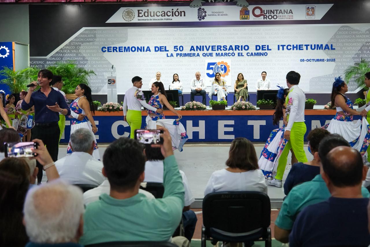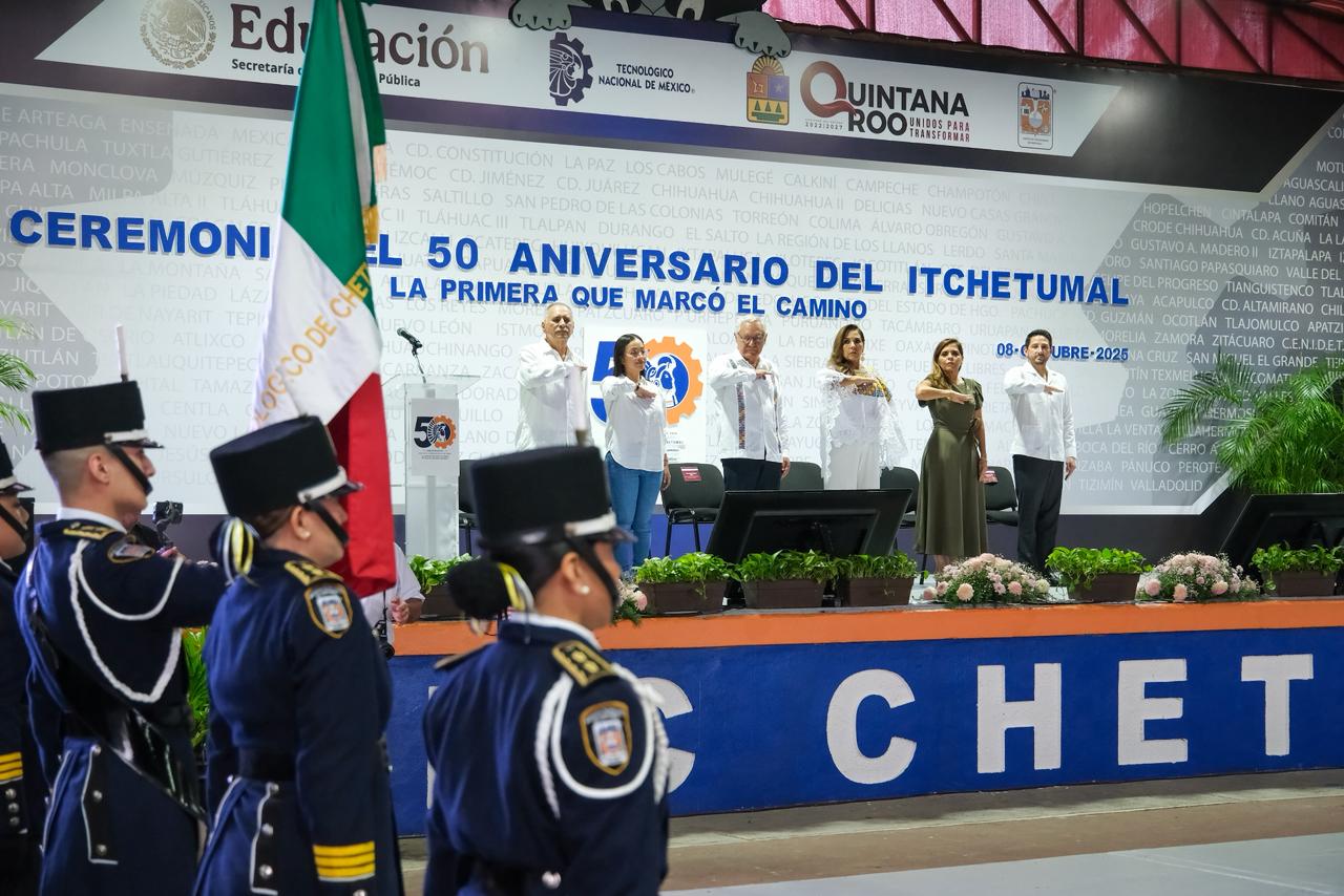 Chetumal, Q. Roo.— En una emotiva ceremonia encabezada por la gobernadora Mara Lezama Espinosa y el director general del Tecnológico Nacional de México (TecNM), Ramón Jiménez López, el Instituto Tecnológico de Chetumal celebró su 50 aniversario, consolidándose como una de las instituciones educativas más emblemáticas del sur del país.
