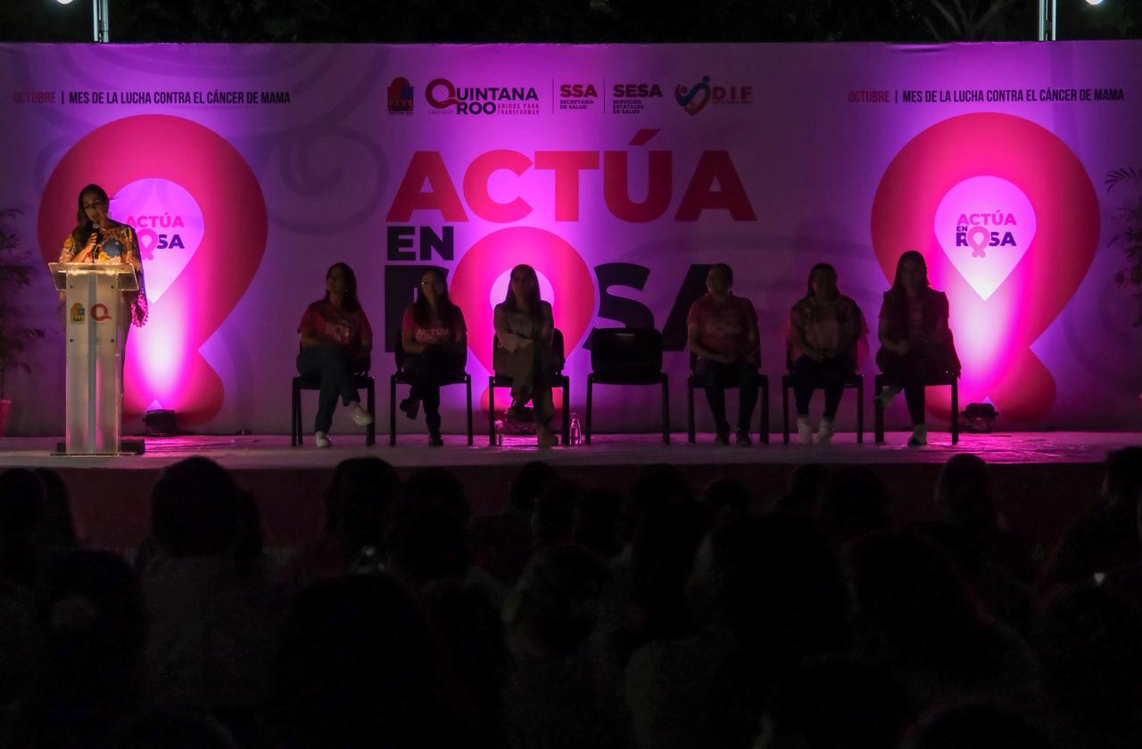 Desde los bajos del Palacio de Gobierno, la mandataria exhortó a las mujeres quintanarroenses a realizarse autoexploraciones periódicas, destacando que la detección temprana puede salvar vidas. “El cáncer de mama puede cambiarlo todo en un instante, pero también puede combatirse si se actúa a tiempo”, afirmó.