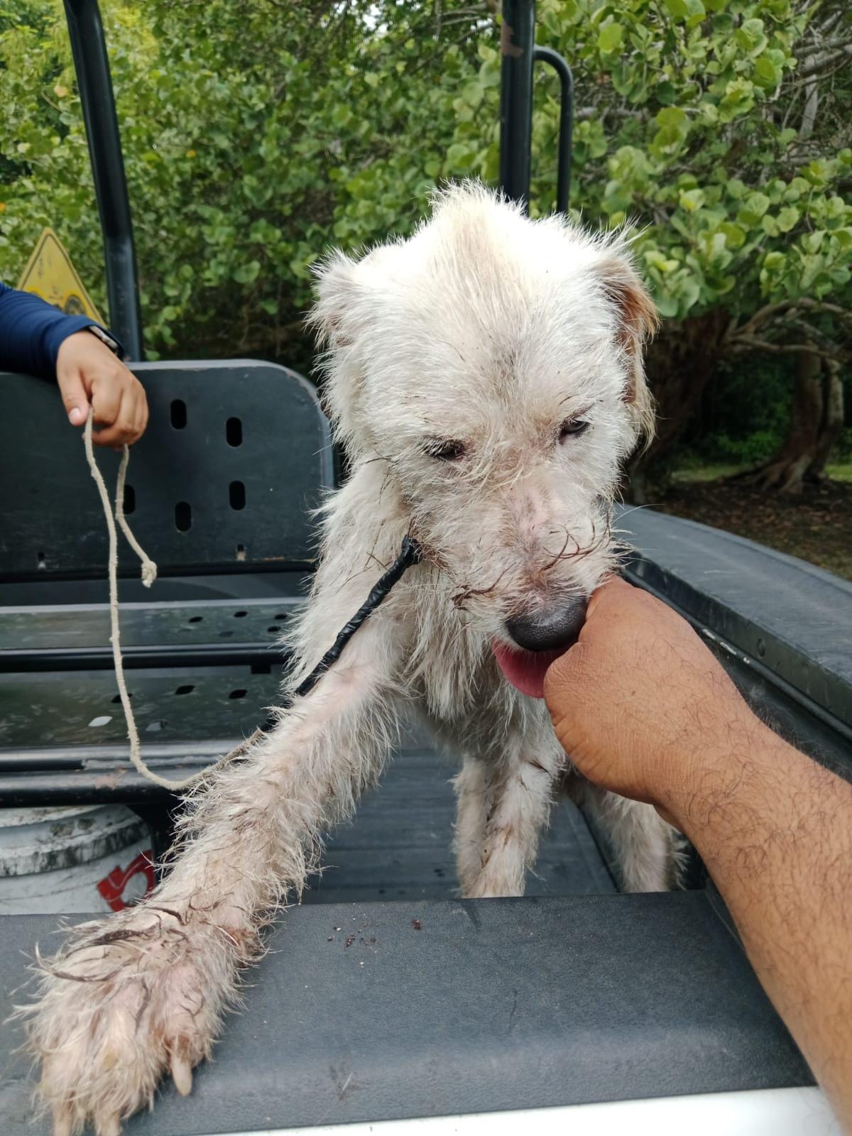 CHETUMAL, 08 de octubre.— En una acción urgente y coordinada entre el municipio de Othón P. Blanco y el gobierno del estado de Quintana Roo, fue rescatada una perrita que había sido cruelmente amarrada, atada del hocico y abandonada en el Boulevard Bahía de Chetumal, frente al Centro Internacional de Negocios y Convenciones.