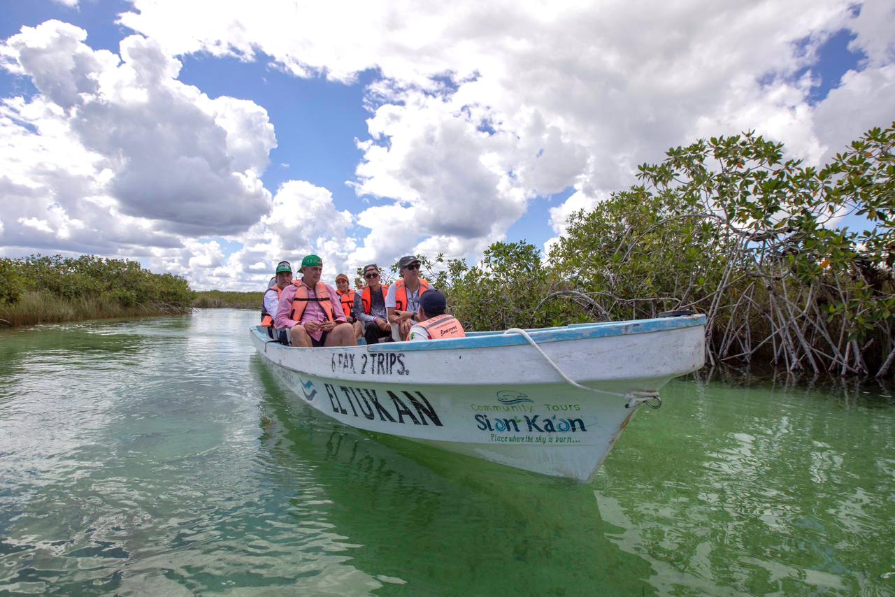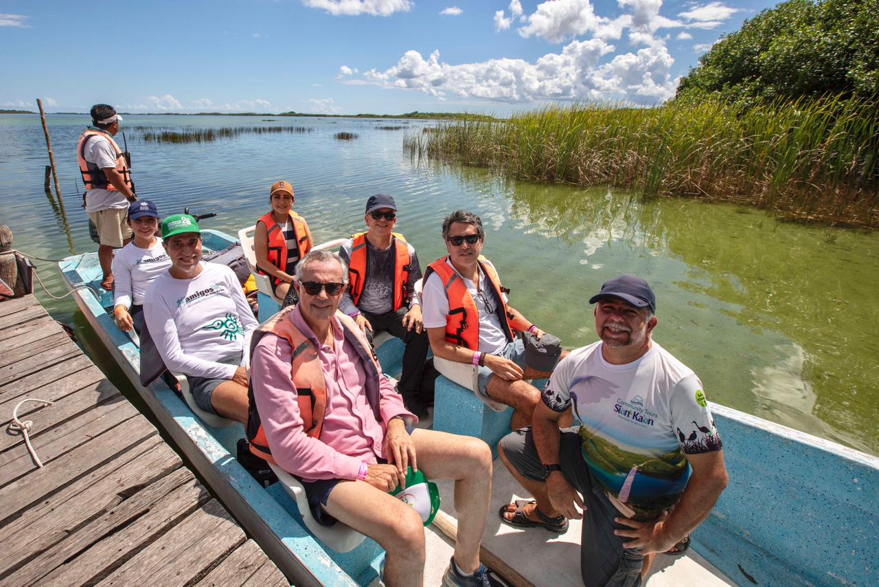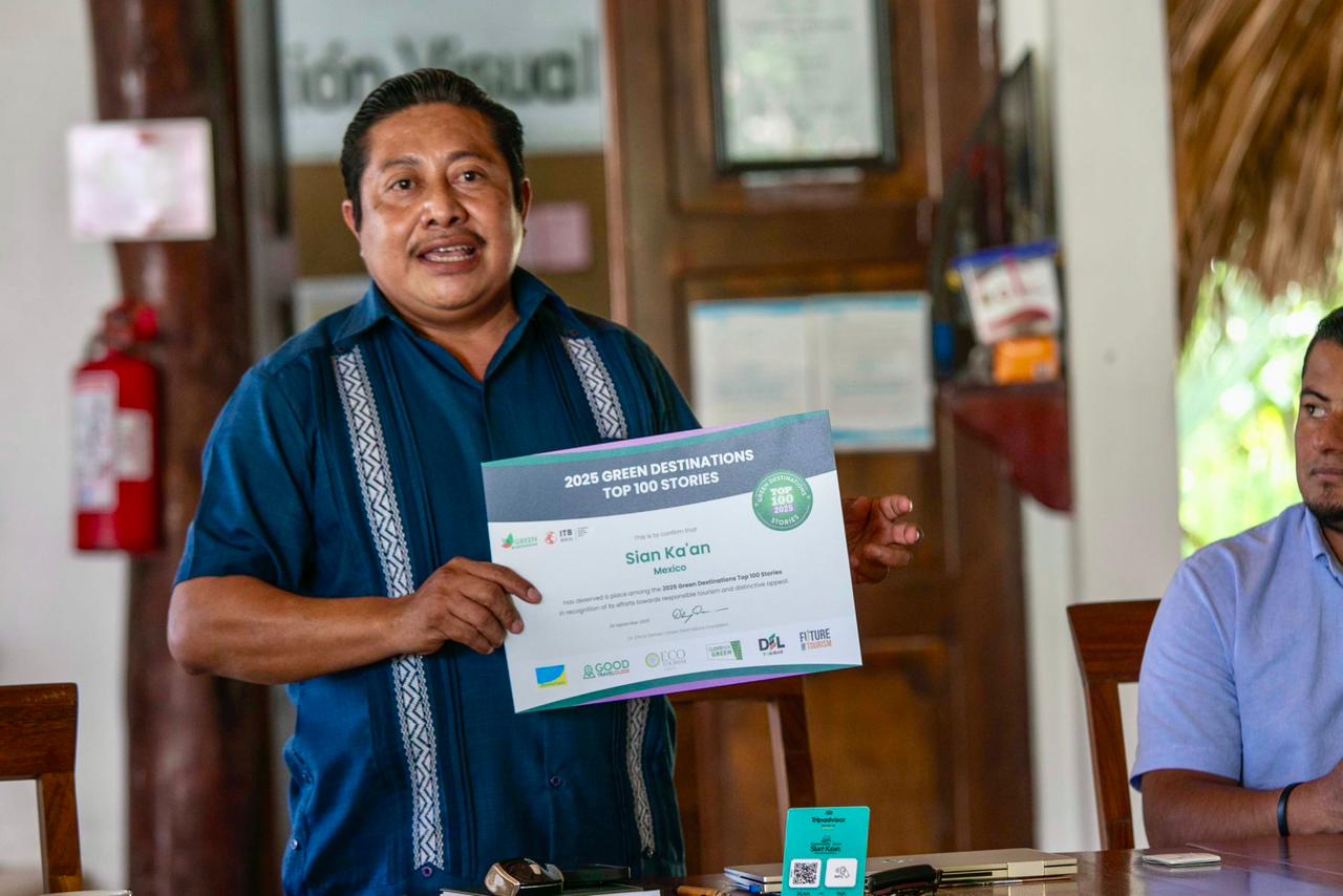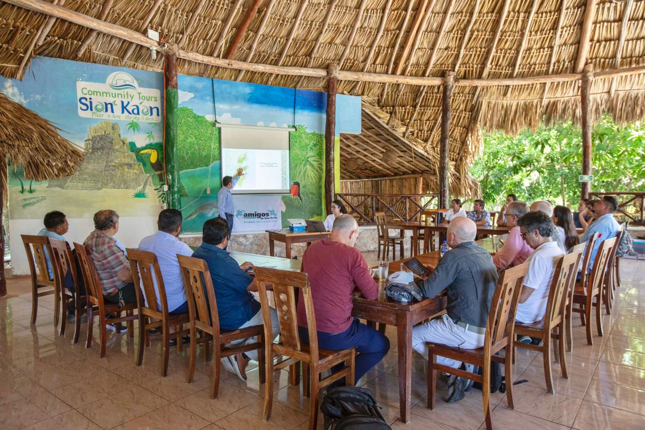 Durante el encuentro, se presentaron avances del proyecto de acciones productivas para la sustentabilidad turística en Maya Ka’an, enfocado en la adaptación climática. Las cooperativas locales expusieron iniciativas como la restauración de manglares, selvas y humedales, así como el monitoreo constante del impacto ecológico, evidenciando un compromiso profundo con el entorno.