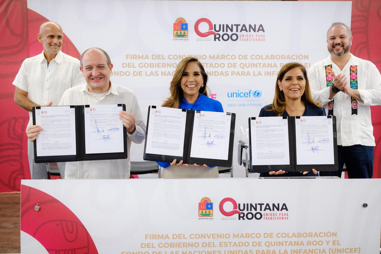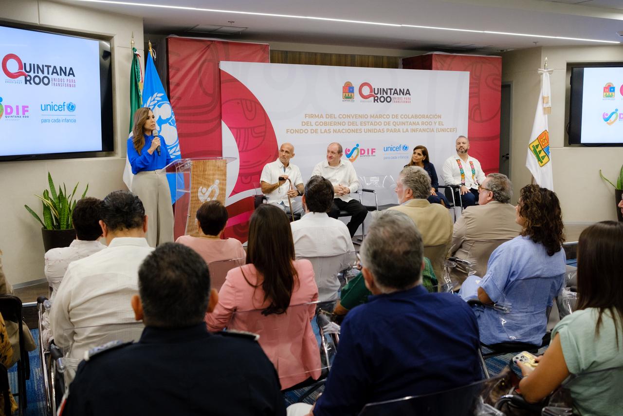 Cancún, Q. Roo.— En un acto de alto compromiso social, el Gobierno de Quintana Roo y el Sistema DIF estatal formalizaron un convenio de colaboración con UNICEF México, con el objetivo de fortalecer la protección integral de niñas, niños y adolescentes en el estado.