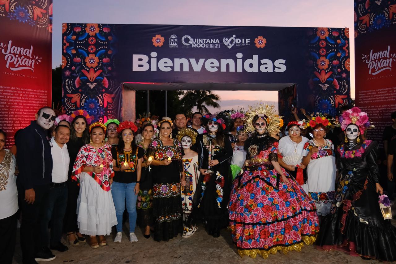 Chetumal, Q. Roo.— En un emotivo encuentro con la cultura y las raíces mayas, la gobernadora Mara Lezama Espinosa y Verónica Lezama Espinosa, presidenta honoraria del DIF Quintana Roo, encabezaron la celebración del “Janal Pixan 2025: Tradición Viva”, acompañadas por cientos de familias, visitantes y turistas que se dieron cita en la Plaza Cívica del Palacio de Gobierno.