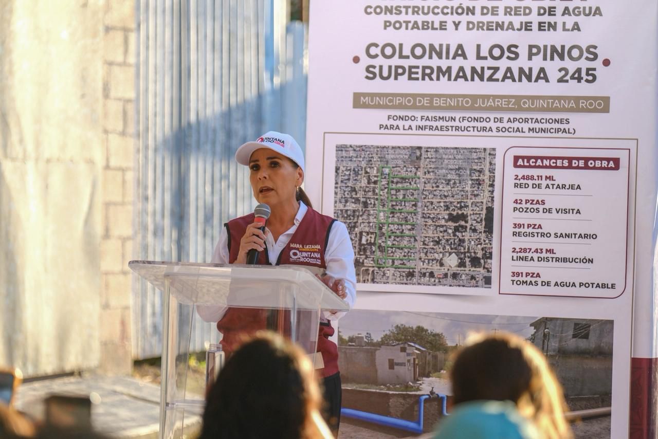 Cancún, Q. Roo.— En un acto que simboliza el cierre de una larga etapa de abandono, la gobernadora Mara Lezama Espinosa y la presidenta municipal de Benito Juárez, Ana Paty Peralta de la Peña, dieron inicio a la construcción de la red de drenaje sanitario y agua potable en la colonia Los Pinos, ubicada en la supermanzana 245. Esta obra beneficiará directamente a cerca de mil 500 habitantes que, durante 25 años, han vivido sin acceso a estos servicios básicos.