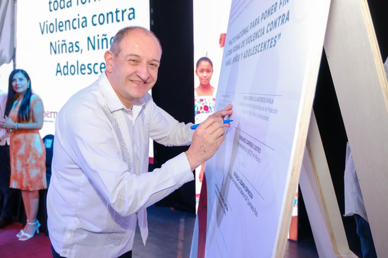 Cancún.- Quintana Roo se convirtió en el primer estado de México en suscribir el Pacto Nacional para Poner Fin a Toda Forma de Violencia contra Niñas, Niños y Adolescentes, un compromiso que busca articular esfuerzos institucionales, sociales e internacionales para garantizar la protección integral de la infancia y adolescencia en el país.