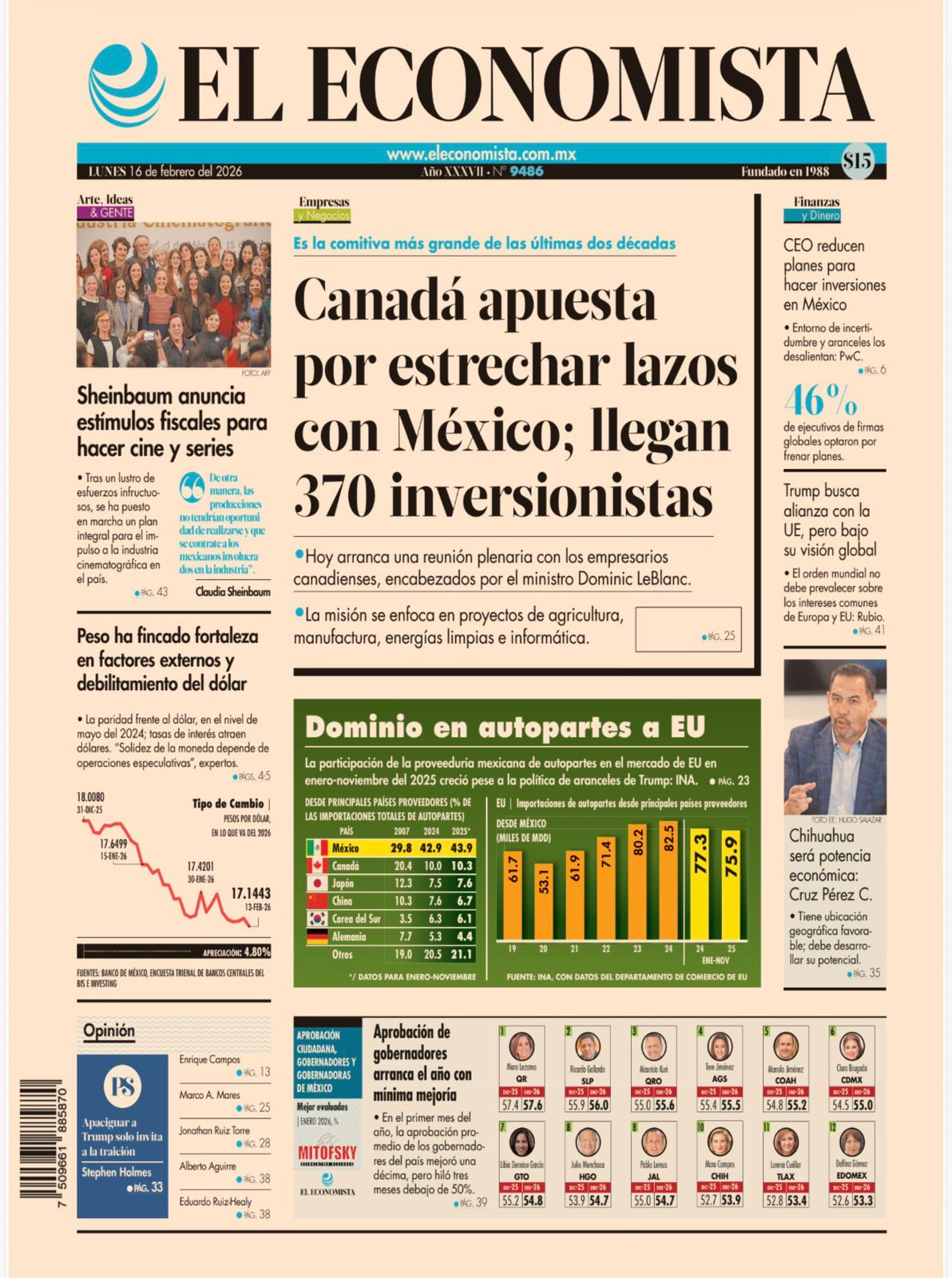 Economía y Finanzashace 4 horasMERCADOS FINANCIEROS EN MÉXICO: EL DÓLAR SE MANTIENE ESTABLE Y LA BOLSA AVANZA ESTE 16 DE FEBRERO DE 2026
