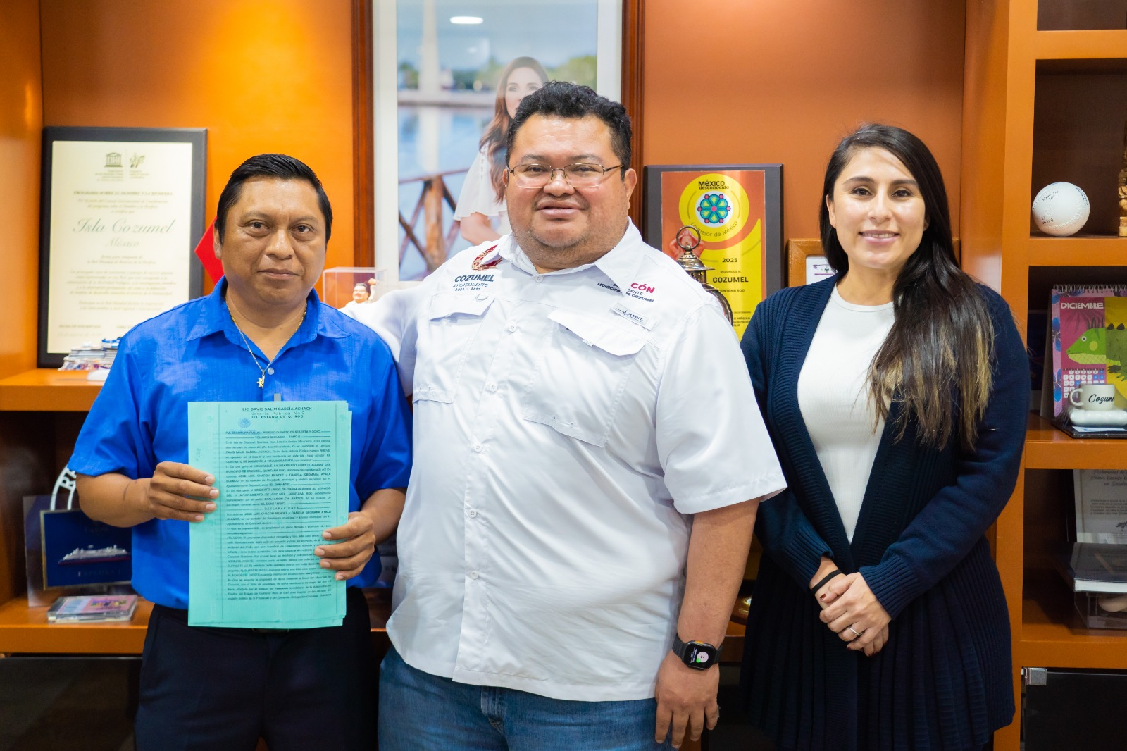 Cozumel, 15 de enero de 2026.– En un hecho considerado histórico para la base trabajadora del Ayuntamiento de Cozumel, el presidente municipal José Luis Chacón Méndez formalizó la donación de un predio al Sindicato Único de Trabajadores al Servicio del Ayuntamiento, poniendo fin a más de 15 años de gestiones que habían quedado sin respuesta durante administraciones anteriores.
