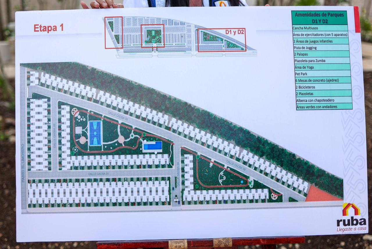 Además, verificó el avance de las primeras viviendas terminadas, que incluyen dos habitaciones, sala, comedor, cocina, patio y baño, todas con servicios básicos garantizados. El desarrollo contempla alrededor de mil 800 viviendas distribuidas en 22 hectáreas, con más de 22 mil metros cuadrados destinados exclusivamente a parques y áreas comunes.