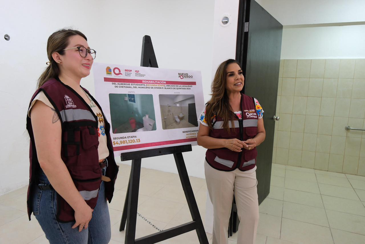 Chetumal.– El Gobierno de Quintana Roo avanza con paso firme en la dignificación de los espacios destinados a la juventud. La gobernadora Mara Lezama Espinosa presentó los progresos de la segunda etapa de rehabilitación del albergue estudiantil de Chetumal, un proyecto que suma ya más de 20 millones de pesos en inversión entre sus dos fases, consolidándose como una intervención histórica para la capital del estado.