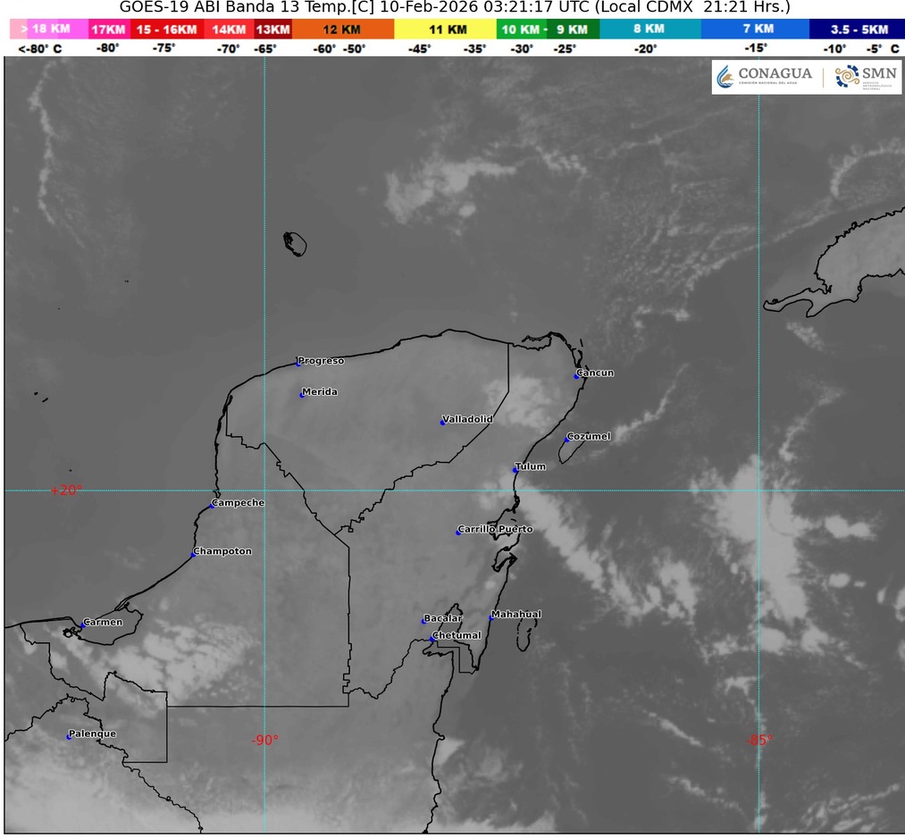Quintana Roo inicia este 10 de febrero con un ambiente cálido y húmedo, característico de la temporada invernal en el Caribe mexicano. Durante el día se esperan temperaturas máximas cercanas a los 26 °C, acompañadas de una sensación térmica más elevada debido a la humedad persistente en la región.