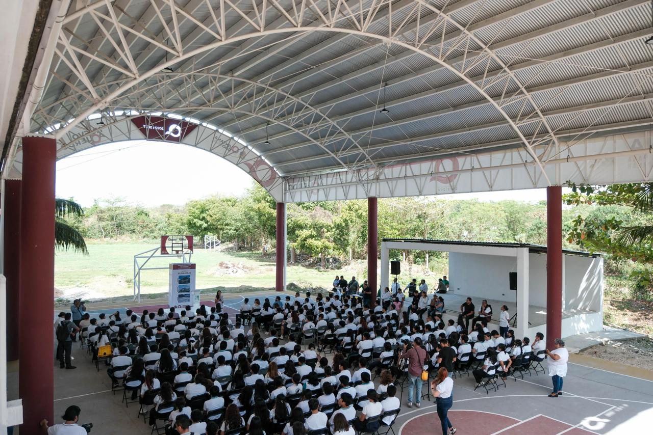 Acompañada por la presidenta municipal Blanca Merari Tziu Muñoz y la presidenta honoraria del DIF Quintana Roo, Verónica Lezama, la Gobernadora destacó que este proyecto responde a un compromiso firme con la educación y el bienestar de la juventud. Recordó que por más de 13 años el plantel careció de un domo, lo que obligaba al alumnado a realizar actividades bajo el sol, la lluvia y altas temperaturas. “Este es un gobierno humanista con corazón feminista, que pone a las personas en el centro de las decisiones”, afirmó.