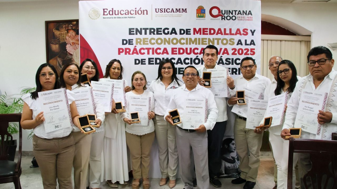 El Colegio de Estudios Científicos y Tecnológicos del Estado de Quintana Roo (CECyTE) destacó a nivel estatal luego de que 15 de sus docentes recibieran la medalla “Reconocimiento a la Práctica Educativa 2025”, otorgada por la Unidad del Sistema para la Carrera de las Maestras y los Maestros (USICAMM). La ceremonia, encabezada por la gobernadora Mara Lezama, reunió a 44 docentes galardonados, de los cuales 36 pertenecen al nivel Medio Superior y, dentro de este grupo, el CECyTE obtuvo la mayor representación.