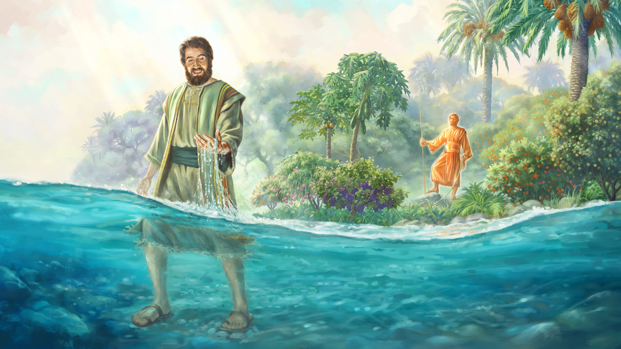 «Estas aguas fluyen hacia la comarca levantina, bajarán hasta la estepa, desembocarán en el mar de las aguas salobres, y lo sanearán. Todos los seres vivos que bullan allí donde desemboque la corriente, tendrán vida; y habrá peces en abundancia. Al desembocar allí estas aguas, quedará saneado el mar y habrá vida dondequiera que llegue la corriente.