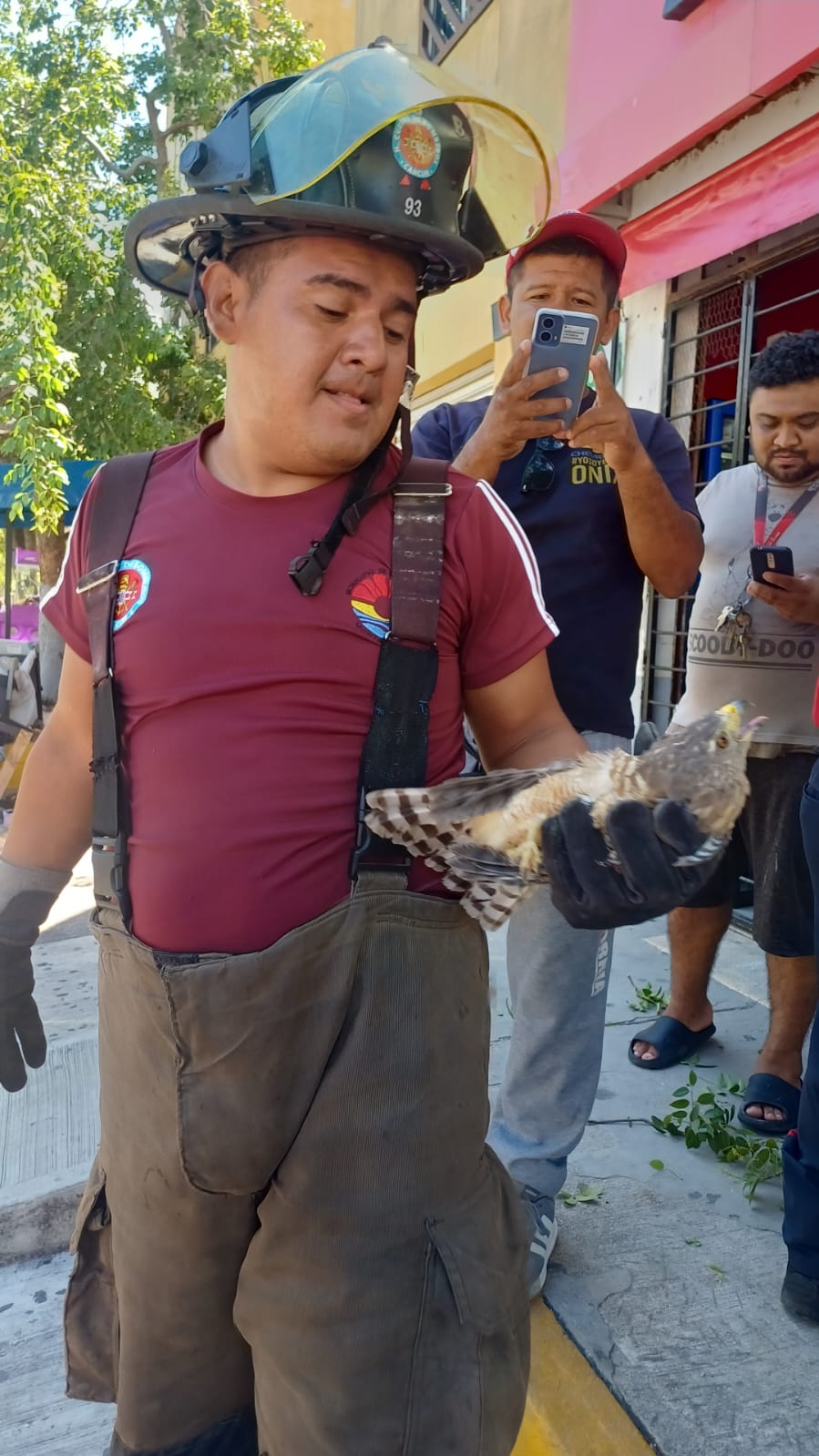 Cancún, Q. Roo, 13 de octubre de 2025.— En una acción que reafirma su compromiso con la protección de la fauna silvestre, elementos del Heroico Cuerpo de Bomberos de Cancún realizaron el rescate de un halcón mexicano que se encontraba atrapado en un árbol de la Supermanzana 251, en el fraccionamiento Paseos del Mar.