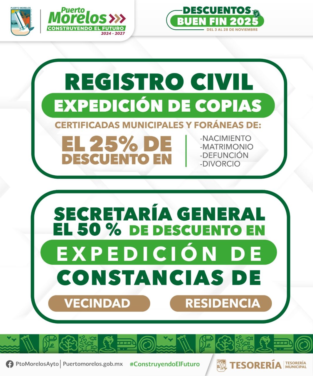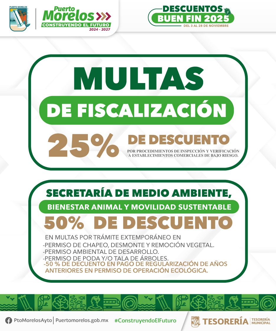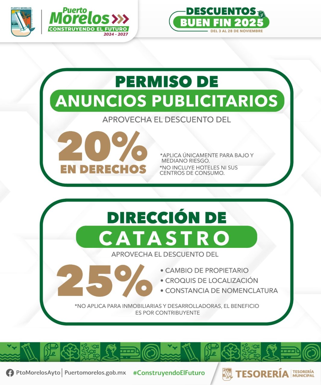 APROVECHAN CONTRIBUYENTES DE PUERTO MORELOS DESCUENTOS FISCALES DURANTE “EL BUEN FIN 2025”