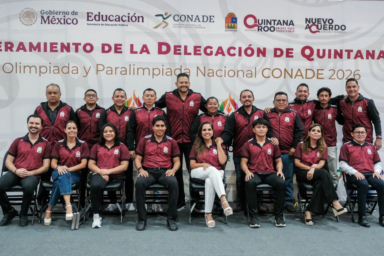 Cancún.— En un acto que reafirma el compromiso del Gobierno de Quintana Roo con el impulso al deporte y el desarrollo integral de la juventud, la gobernadora Mara Lezama Espinosa abanderó a la delegación deportiva más numerosa en la historia del estado, integrada por más de 800 atletas, paratletas, entrenadores, delegados, jueces y personal técnico que representarán a la entidad en la Olimpiada y Paralimpiada Nacional CONADE 2026.