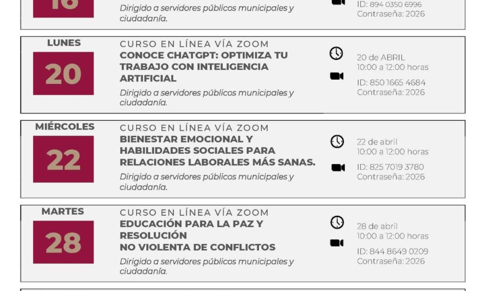 El Ayuntamiento de Benito Juárez anunció una nueva serie de capacitaciones gratuitas orientadas a mejorar el bienestar emocional, la productividad...