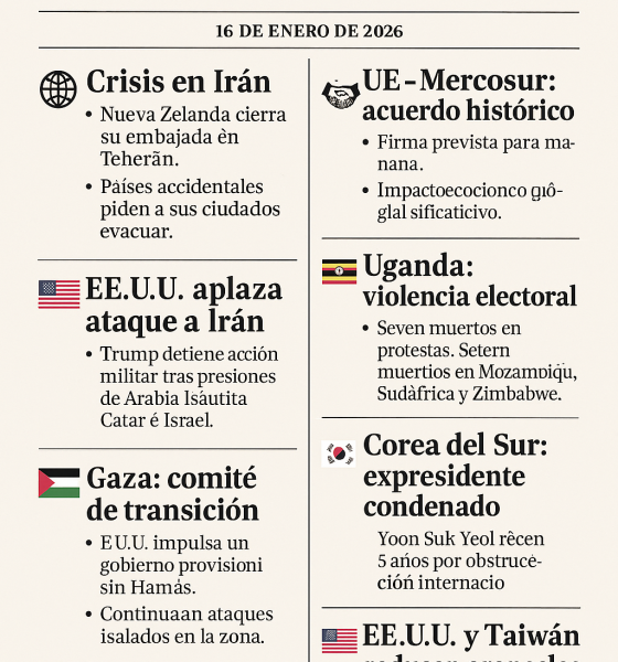 16 de enero de 2026. La jornada internacional estuvo marcada por tensiones geopolíticas, reacomodos diplomáticos, crisis humanitarias y movimientos estratégicos...