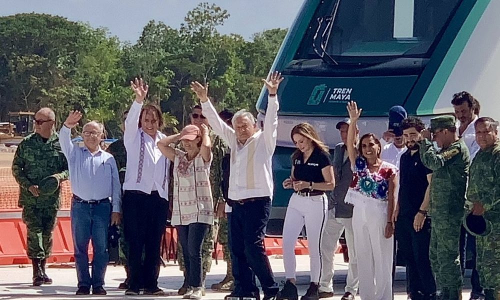 Cancún.- Con el Presidente de México Andrés Manuel López Obrador, la gobernadora Mara Lezama Espinosa dio el banderazo de la llegada del primer vagón del Tren...