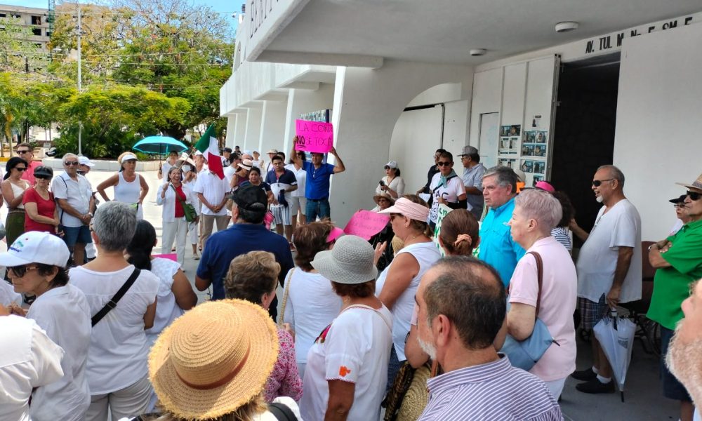 Cancún (Francisco Javier Robles/5toPoder).- En el municipio Benito Juárez, un grupo de mujeres y hombres, la mayoría de la tercera edad, protestó frente al Palacio Municipal,...