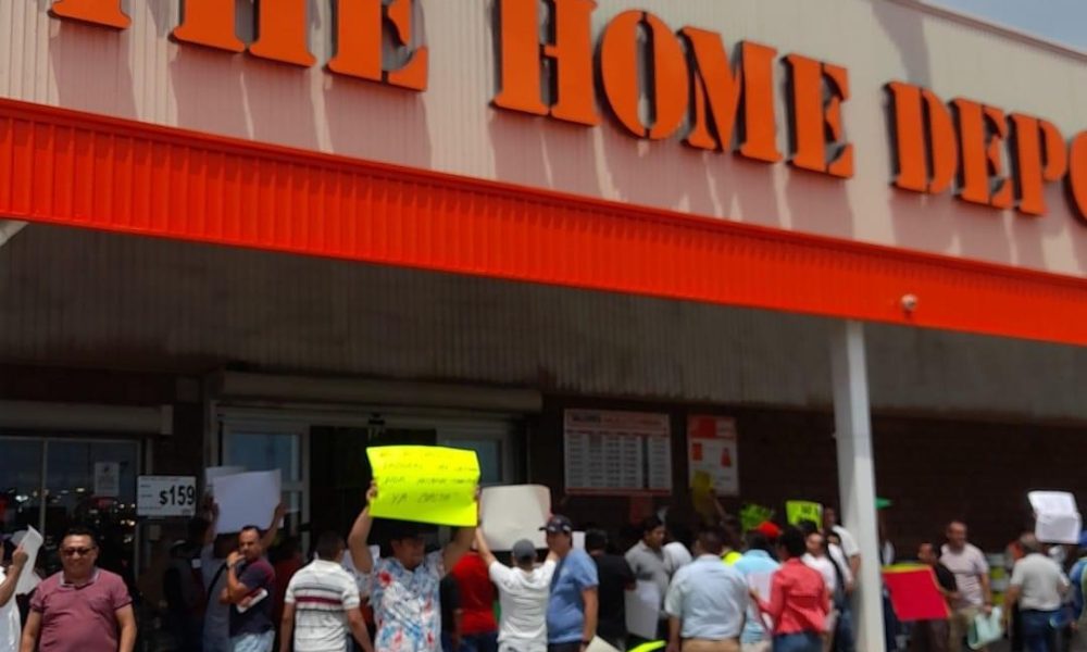 Cancún (Francisco Javier Robles / 5to Poder).- Trabajadores de la empresa The Home Depot protestaron este sábado afuera la sucursal ubicada en avenidas Kabah y Andrés...