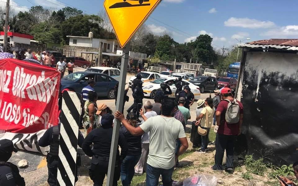 Chetumal (Samuel Caamal / 5to Poder).- El tramo Nicolás Bravo-Escárcega fue bloqueado por ejidatarios de Laguna Om inconformes por la construcción de la estación del Tren...