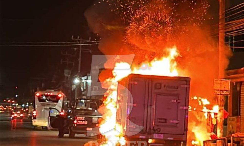 Cancún / 5to Poder.- Un choque causó el incendio de dos vehículos y un puesto de hamburguesas en la avenida Calzada Lakin en la supermanzana 105...