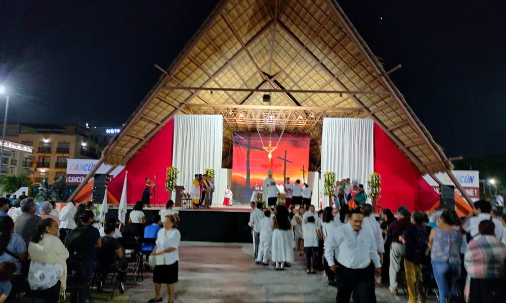 Cancún / 5to Poder.- Cientos de feligreses se dan cita en la celebración de la misa y representación de la última cena, en la explanada del...