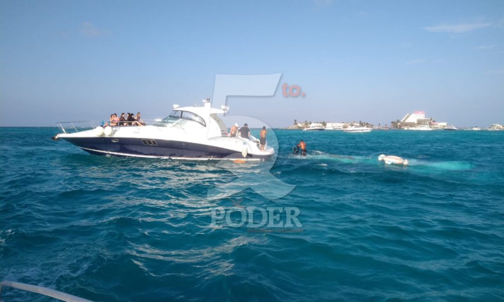 Isla Mujeres / 5to Poder.- Un yate con 15 personas a bordo se hundió en inmediaciones de playa norte en Isla Mujeres. Por fortuna todos sanos...
