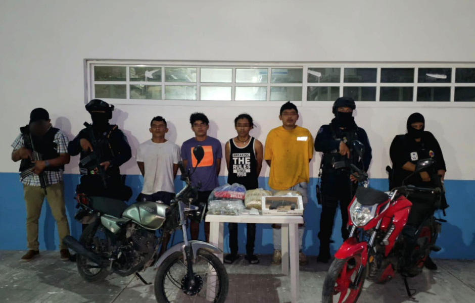 Playa del Carmen.- Detienen a Luis Fernando “N”, Alberto “N”, Geyler “N” y Fernando “N”, por su probable participación en delitos contra la salud y portación...