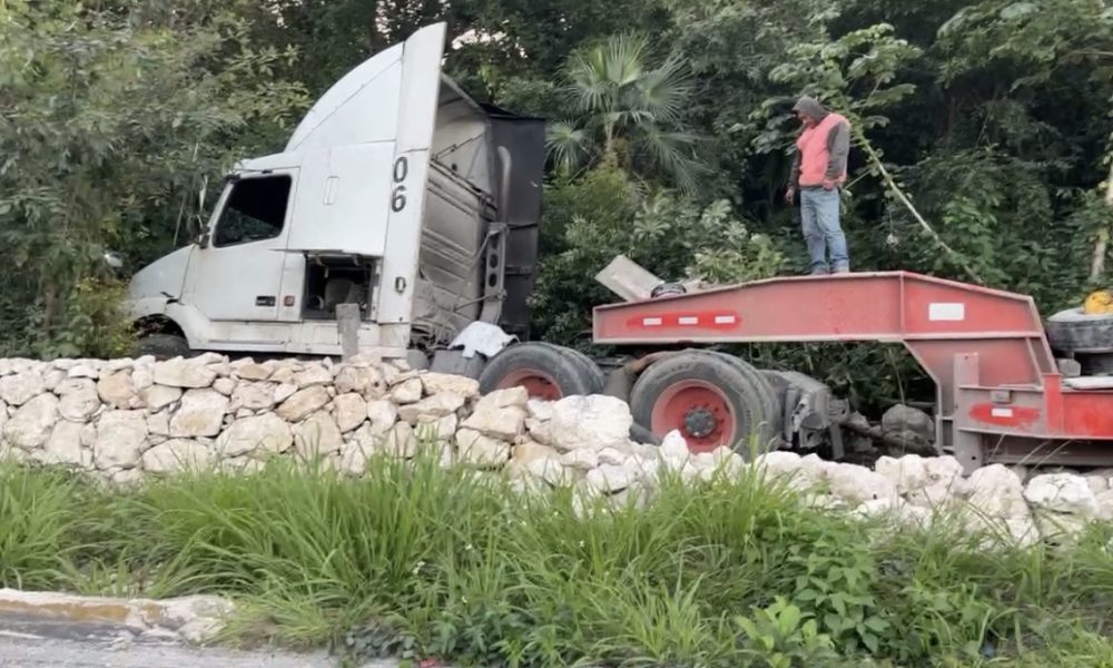 Tulum.- Un trailero se salió de la vía de rodamiento en la carretera 307, tramo Tulum- Playa del Carmen, sin que se reporten lesionados. De acuerdo...