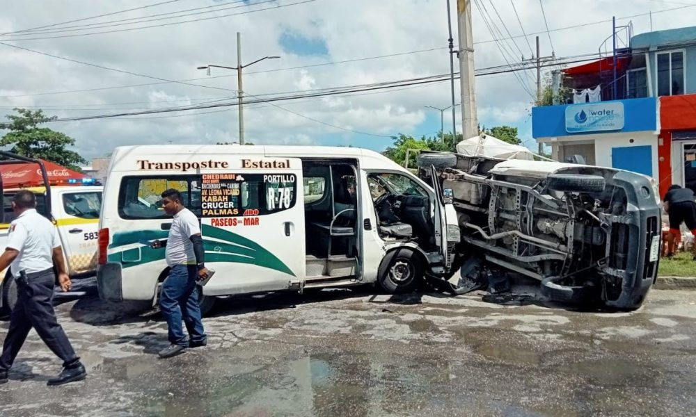 Cancún / 5to Poder.- Un aparatoso accidente se registró en el cruce de las avenidas Leona Vicario e en la supermanzana 200, donde una combi de...