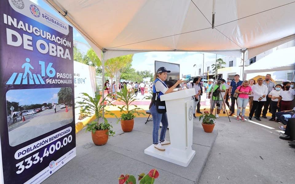 Playa del Carmen. dando prioridad a la seguridad, educación y salud, la presidenta Lili Campos encabezó la inauguración de obra de 16 pasos peatonales, evento en...